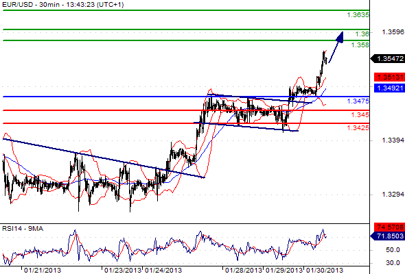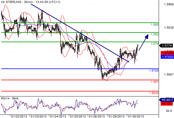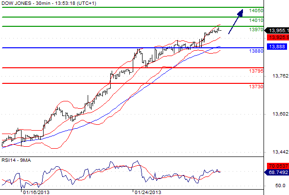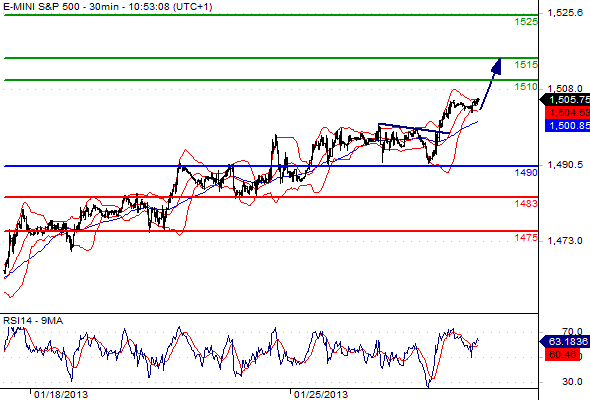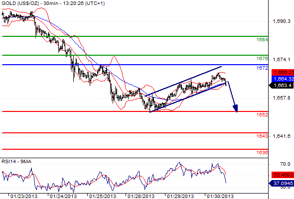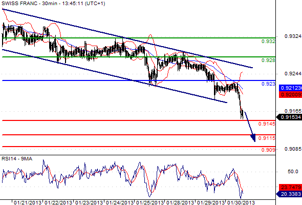 Free Afternoon Forex Trading signals – Jan 30, 2013 Published: 30 January 2013 Categories: Free Forex trading Signals EUR/USD GBP/USD USD/CHF USD/CAD CRUDE OIL GOLD DOWJONES S&P 500 Please note that due to market volatility, some of the below sight prices may have already been reached and scenarios played out. EUR/USD intraday: further advance. Pivot: 1.3475 Our preference: Long positions above 1.3475 with targets @ 1.358 & 1.36 in extension. Alternative scenario: Below 1.3475 look for further downside with 1.346 & 1.3425 as targets. Comment: the pair has validated a bullish flag and remains on the upside. NEXT GBP/USD intraday: continuation of the rebound. Pivot: 1.5705 Our preference: Long positions above 1.5705 with targets @ 1.579 & 1.582 in extension. Alternative scenario: Below 1.5705 look for further downside with 1.567 & 1.5635 as targets. Comment: the pair has broken above a declining trend line and remains on the upside. PREVIOUS NEXT USD/CHF intraday: under pressure. Pivot: 0.923 Our preference: Short positions below 0.923 with targets @ 0.9145 & 0.9115 in extension. Alternative scenario: Above 0.923 look for further upside with 0.928 & 0.932 as targets. Comment: the pair is breaking below its bearish channel lower boundary and should face further weakness. PREVIOUS NEXT USD/CAD intraday: under pressure. Pivot: 1.0045 Our preference: Short positions below 1.0045 with targets @ 1.0005 & 0.998 in extension. Alternative scenario: Above 1.0045 look for further upside with 1.0065 & 1.01 as targets. Comment: the pair stands below its new resistance and remains under pressure. PREVIOUS NEXT Crude Oil (Mar 13) intraday: the bias remains bullish. Pivot: 96.80 Our preference: LONG positions above 96.8 with 98.35 & 99.6 in sight. Alternative scenario: The downside penetration of 96.8 will call for a slide towards 96.25 & 95.4. Comment: the immediate trend remains up and the momentum is strong. PREVIOUS NEXT GOLD (Spot) intraday: the downside prevails. Pivot: 1672.00 Our preference: SHORT positions below 1672 with 1652 & 1643 in sight. Alternative scenario: The upside breakout of 1672 will open the way to 1676 & 1684. Comment: a bearish flag pattern is take place, calling for a drop towards 1652. PREVIOUS NEXT Dow Jones Industrial Average intraday: bullish bias above 13880 Pivot: 13880 Our preference: LONG positions above 13880 with 13970 & 14010 in sight. Alternative scenario: The downside breakout of 13880 will open the way to 13795 & 13730. Comment: technically, the RSI is above its neutrality area at 50. PREVIOUS NEXT S&P 500 (Mar 13) intraday: bullish bias above 1490 Pivot: 1490 Our preference: LONG positions above 1490 with 1510 & 1515 as next targets. Alternative scenario: The downside breakout of 1490 will open the way to 1483 & 1475. Comment: the RSI advocates for further advance. PREVIOUS 0 0 votes Page Rating Subscribe Notify of new follow-up comments new replies to my comments I allow to use my email address and send notification about new comments and replies (you can unsubscribe at any time). Label {} [+] Name* Email* Label {} [+] Name* Email* 0 Comments Inline Feedbacks View all comments