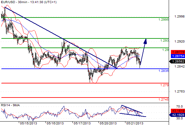 Our preference: LONG positions above 1.2835 with targets @ 1.29 & 1.293.