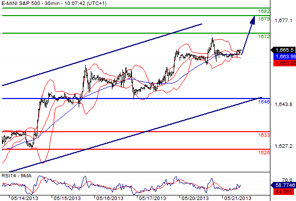 Our preference: LONG positions above 1646 with 1672 & 1679 in sight.