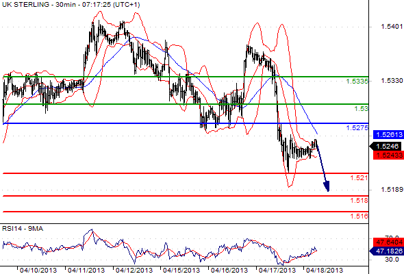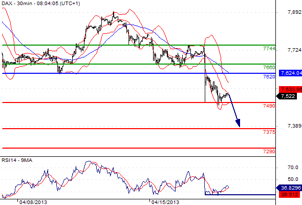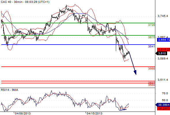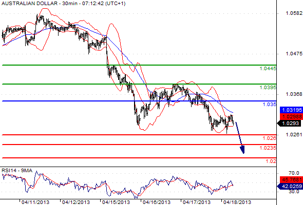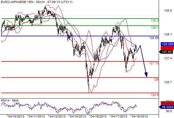 Free Morning Forex Trading signals – Apr 18, 2013 Published: 18 April 2013 Categories: Free Forex trading Signals EUR/USD GBP/USD USD/JPY EUR/JPY GBP/JPY AUD/USD CAC 40 DAX Please note that due to market volatility, some of the below sight prices may have already been reached and scenarios played out. EUR/USD intraday: the downside prevails. Pivot: 1.3085. Our preference: SHORT positions @ 1.307 with targets @ 1.2985 & 1.295. Alternative scenario: The upside penetration of 1.3085 will call for a rebound towards 1.3115 & 1.3165. Comment: the pair is posting a rebound but stands below its new resistance, the RSI is reversing down. NEXT GBP/USD intraday: under pressure. Pivot: 1.5275. Our preference: SHORT positions @ 1.526 with 1.521 & 1.518 in sight. Alternative scenario: The upside breakout of 1.5275 will open the way to 1.53 & 1.5335. Comment: the pair stands below its resistance and remains under pressure, the RSI is turning down. PREVIOUS NEXT USD/JPY intraday: key ST resistance at 98.4 Pivot: 98.40. Our preference: SHORT positions @ 98.3 with targets @ 97.6 & 97.1. Alternative scenario: The upside penetration of 98.4 will call for 98.7 & 99.1. Comment: the pair has struck against its resistance and remains under pressure, the RSI is reversing down. PREVIOUS NEXT EUR/JPY intraday: under pressure. Pivot: 128.95 Our preference: Short @ 128.8 with targets @ 127.15 & 126 in extension. Alternative scenario: Above 128.95 look for further upside with 129.7 & 130.2 as targets. Comment: the pair is rebounding but stands below its resistance, the RSI is reversing down. PREVIOUS NEXT GBP/JPY intraday: key ST resistance at 150.2. Pivot: 150.2 Our preference: Short @ 150 with targets @ 148.7 & 147.6 in extension. Alternative scenario: Above 150.2 look for further upside with 151.2 & 151.7 as targets. Comment: the pair has struck against its resistance and should face further weakness as the RSI is reversing down. PREVIOUS NEXT AUD/USD intraday: under pressure. Pivot: 1.035 Our preference: Short positions below 1.035 with targets @ 1.026 & 1.0235 in extension. Alternative scenario: Above 1.035 look for further upside with 1.0395 & 1.0445 as targets. Comment: the pair remains on the downside and is approaching its previous low. PREVIOUS NEXT Cac 40 (Apr 13) intraday: under pressure. Pivot: 3641 Our preference: SHORT positions below 3641 with 3560 & 3507 as next targets. Alternative scenario: The upside penetration of 3641 will call for a rebound towards 3675 & 3720. Comment : Prices are evolving below the descending 50-simple moving average. PREVIOUS NEXT Dax (Jun 13) intraday: consolidation. Pivot: 7620 Our preference: SHORT positions below 7620 with 7490 & 7375 as next targets. Alternative scenario: The upside breakout of 7620 will open the way to 7660 & 7744. Comment: technically, the RSI is below its neutrality area at 50. PREVIOUS 0 0 votes Page Rating Subscribe Notify of new follow-up comments new replies to my comments I allow to use my email address and send notification about new comments and replies (you can unsubscribe at any time). Label {} [+] Name* Email* Label {} [+] Name* Email* 0 Comments Inline Feedbacks View all comments