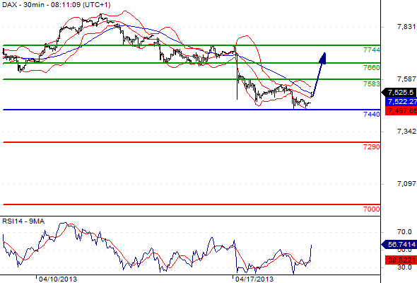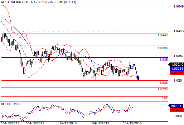 Free Morning Forex Trading signals – Apr 19, 2013 Published: 19 April 2013 Categories: Free Forex trading Signals EUR/USD GBP/USD USD/JPY EUR/JPY GBP/JPY AUD/USD CAC 40 DAX Please note that due to market volatility, some of the below sight prices may have already been reached and scenarios played out. EUR/USD intraday: the bias remains bullish. Pivot: 1.3020. Our preference: LONG positions @ 1.303 with targets @ 1.309 & 1.3115. Alternative scenario: The downside breakout of 1.302 will open the way to 1.2985 & 1.295. Comment: the pair has rebounded on its support and remains on the upside, the RSI is well directed. NEXT GBP/USD intraday: bullish bias above 1.5255 Pivot: 1.5255. Our preference: LONG positions @ 1.5265 with targets @ 1.531 & 1.5335. Alternative scenario: The downside breakout of 1.5255 will open the way to 1.521 & 1.518. Comment: the pair remains on the upside and is approaching its resistance, the RSI is well directed. PREVIOUS NEXT USD/JPY intraday: the upside prevails. Pivot: 97.60. Our preference: LONG positions above 97.6 with 98.7 & 99.1 as next targets. Alternative scenario: The downside penetration of 97.6 will call for a slide towards 97.1 & 96.5. Comment: the pair remains on the upside and is challenging its resistance, the RSI is well directed. PREVIOUS NEXT EUR/JPY intraday: the upside prevails. Pivot: 128 Our preference: Long positions above 128 with targets @ 128.95 & 129.7 in extension. Alternative scenario: Below 128 look for further downside with 127.3 & 126.4 as targets. Comment: the pair remains on the upside and is challenging its resistance, the RSI is well directed. PREVIOUS NEXT GBP/JPY intraday: the upside prevails. Pivot: 149.6 Our preference: Long @ 149.8 with targets @ 151.2 & 151.7 in extension. Alternative scenario: Below 149.6 look for further downside with 149 & 148.05 as targets. Comment: the pair remains on the upside and should reach its previous high as the RSI is still well directed. PREVIOUS NEXT AUD/USD intraday: key ST resistance at 1.035. Pivot: 1.035 Our preference: Short positions below 1.035 with targets @ 1.026 & 1.0235 in extension. Alternative scenario: Above 1.035 look for further upside with 1.0395 & 1.0445 as targets. Comment: the pair is rebounding but stands below its resistance. PREVIOUS NEXT Cac 40 (Apr 13) intraday: rebound expected. Pivot: 3580 Our preference: LONG positions above 3580 with 3675 & 3709 as next targets. Alternative scenario: The downside penetration of 3580 will call for 3560 & 3507. Comment : the RSI broke above a declining trend line. PREVIOUS NEXT Dax (Jun 13) intraday: rebound expected. Pivot: 7440 Our preference: LONG positions above 7440 with targets @ 7583 & 7660. Alternative scenario: The downside penetration of 7440 will call for 7290 & 7000. Comment: the RSI calls for a rebound. PREVIOUS 0 0 votes Page Rating Subscribe Notify of new follow-up comments new replies to my comments I allow to use my email address and send notification about new comments and replies (you can unsubscribe at any time). Label {} [+] Name* Email* Label {} [+] Name* Email* 0 Comments Inline Feedbacks View all comments