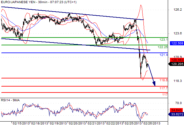 Alternative scenario: Above 121.4 look for further upside with 122.25 & 123.1 as targets.