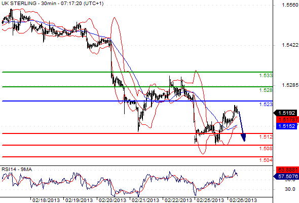 Our preference: SHORT positions @ 1.522 with 1.512 & 1.508 as next targets.