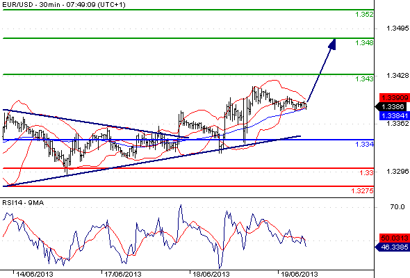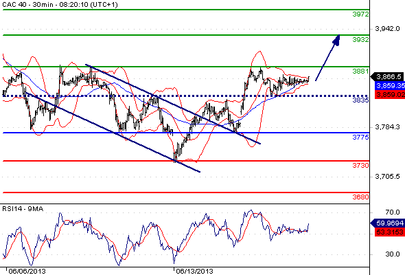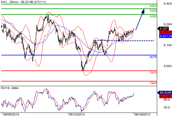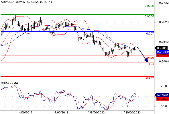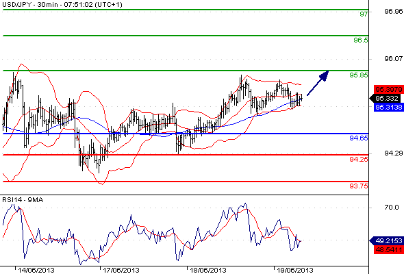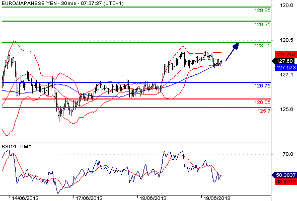 Free Morning Forex Trading signals – June 19 2013 Published: 19 June 2013 Categories: Free Forex trading Signals EUR/USD GBP/USD USD/JPY EUR/JPY GBP/JPY AUD/USD CAC 40 DAX Please note that due to market volatility, some of the below sight prices may have already been reached and scenarios played out. EUR/USD intraday: supported by a rising trend line. Pivot: 1.3340. Our preference: LONG positions above 1.334 with targets @ 1.343 & 1.348. Alternative scenario: The downside penetration of 1.334 will call for a slide towards 1.33 & 1.3275. Comment: the pair remains supported by a rising trend line. NEXT GBP/USD intraday: key ST resistance at 1.568 Pivot: 1.5680. Our preference: SHORT positions below 1.568 with targets @ 1.5565 & 1.5515. Alternative scenario: The upside penetration of 1.568 will call for 1.572 & 1.575. Comment: the pair stands below its resistanceand remains under pressure. PREVIOUS NEXT USD/JPY intraday: the bias remains bullish. Pivot: 94.65. Our preference: LONG positions above 94.65 with 95.85 & 96.5 in sight. Alternative scenario: The downside breakout of 94.65 will open the way to 94.25 & 93.75. Comment: the pair has struck against its resistance and is facing a pull back. PREVIOUS NEXT EUR/JPY intraday: bullish bias above 126.75. Pivot: 126.75 Our preference: Long positions above 126.75 with targets @ 128.45 & 129.35 in extension. Alternative scenario: Below 126.75 look for further downside with 126.05 & 125.7 as targets. Comment: even though a continuation of the consolidation cannot be ruled out, its extent should be limited. PREVIOUS NEXT GBP/JPY intraday: bullish bias above 148.2. Pivot: 148.2 Our preference: Long positions above 148.2 with targets @ 149.6 & 150.65 in extension. Alternative scenario: Below 148.2 look for further downside with 147.05 & 146.3 as targets. Comment: the RSI is mixed with a bullish bias. PREVIOUS NEXT AUD/USD intraday: under pressure. Pivot: 0.957 Our preference: Short positions below 0.957 with targets @ 0.9435 & 0.94 in extension. Alternative scenario: Above 0.957 look for further upside with 0.9665 & 0.9725 as targets. Comment: a break below 0.9435 would trigger a drop towards 0.94. PREVIOUS NEXT Cac 40 (Jun 13) intraday: rebound expected. Pivot: 3775 Our preference: LONG positions above 3775 with 3881 & 3932 as next targets. Alternative scenario: The downside penetration of 3775 will call for 3730 & 3680. Comment : An inverted head-and-shoulders is validated PREVIOUS NEXT Dax (Jun 13) intraday: continuation of the rebound. Pivot: 8075 Our preference: LONG positions above 8075 with targets @ 8350 & 8389. Alternative scenario: The downside penetration of 8075 will call for 7970 & 7900. Comment: the RSI is bullish and calls for further advance. PREVIOUS 0 0 votes Page Rating Subscribe Notify of new follow-up comments new replies to my comments I allow to use my email address and send notification about new comments and replies (you can unsubscribe at any time). Label {} [+] Name* Email* Label {} [+] Name* Email* 0 Comments Inline Feedbacks View all comments