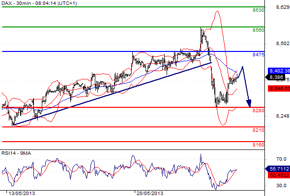 Alternative scenario: The upside breakout of 8475 will open the way to 8560 & 8630.