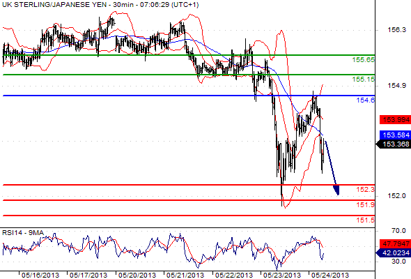 Alternative scenario: Above 154.6 look for further upside with 155.15 & 155.65 as targets.